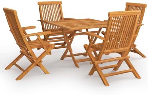 vidaXL Solid Teak Wood 5-Piece Patio Dining⁣ Set – Weather-Resistant Outdoor Furniture Set ‌with Smooth Finish,​ Foldable Table & Chairs for Comfortable Seating