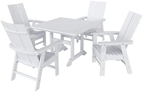 WestinTrends Ashore 5 ⁢Pieces ‍Adirondack Patio Dining Set, All Weather Poly ‍Lumber Slatted ⁤Modern⁣ Farmhouse Outdoor ⁣Furniture Set, 43″ Trestle Square‌ Table and 4 Adirondack⁢ Dining Chair, White