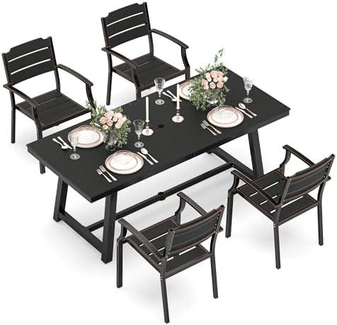 Patio ‌Table and Chairs Set, Patio Furniture Set, 5-Piece, HDPS All-Weather Material Outdoor Dining Set,⁤ Outdoor Furniture Set with Umbrella Hole, Black