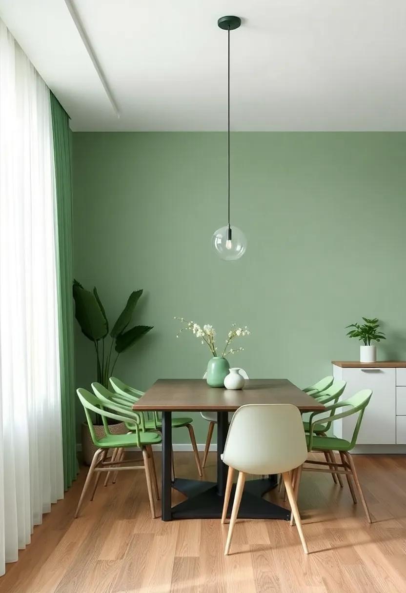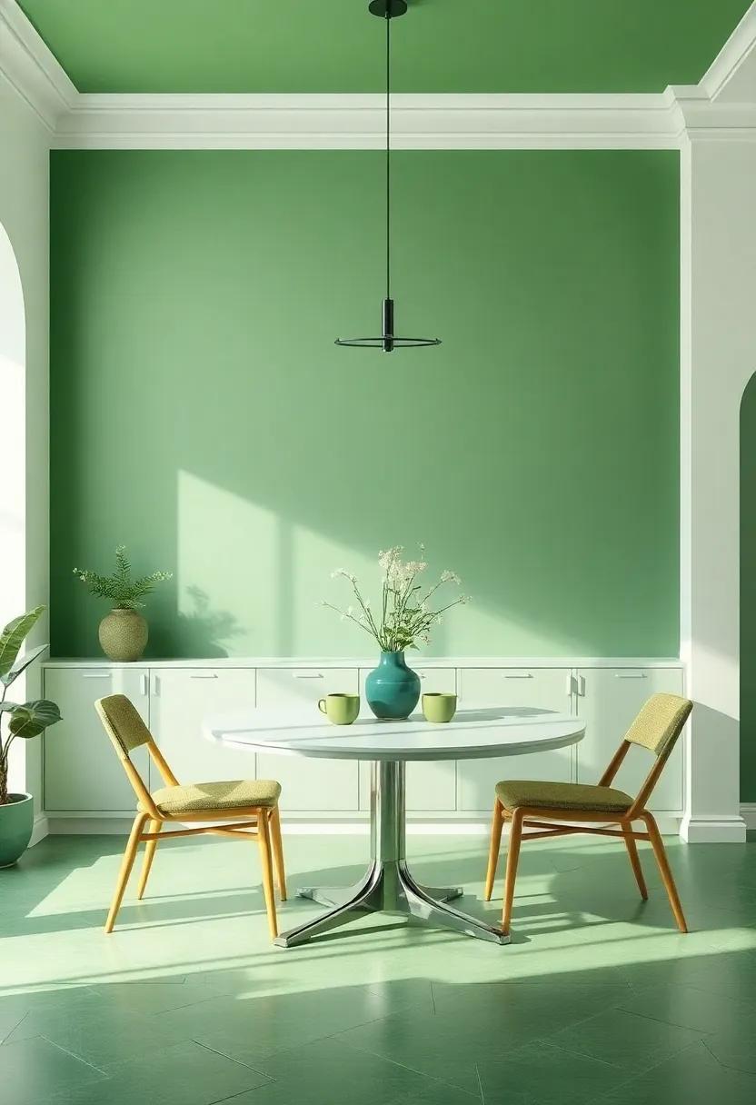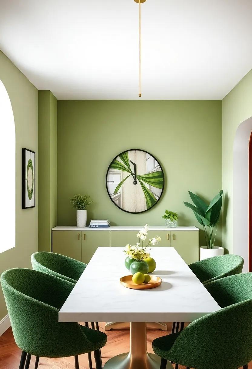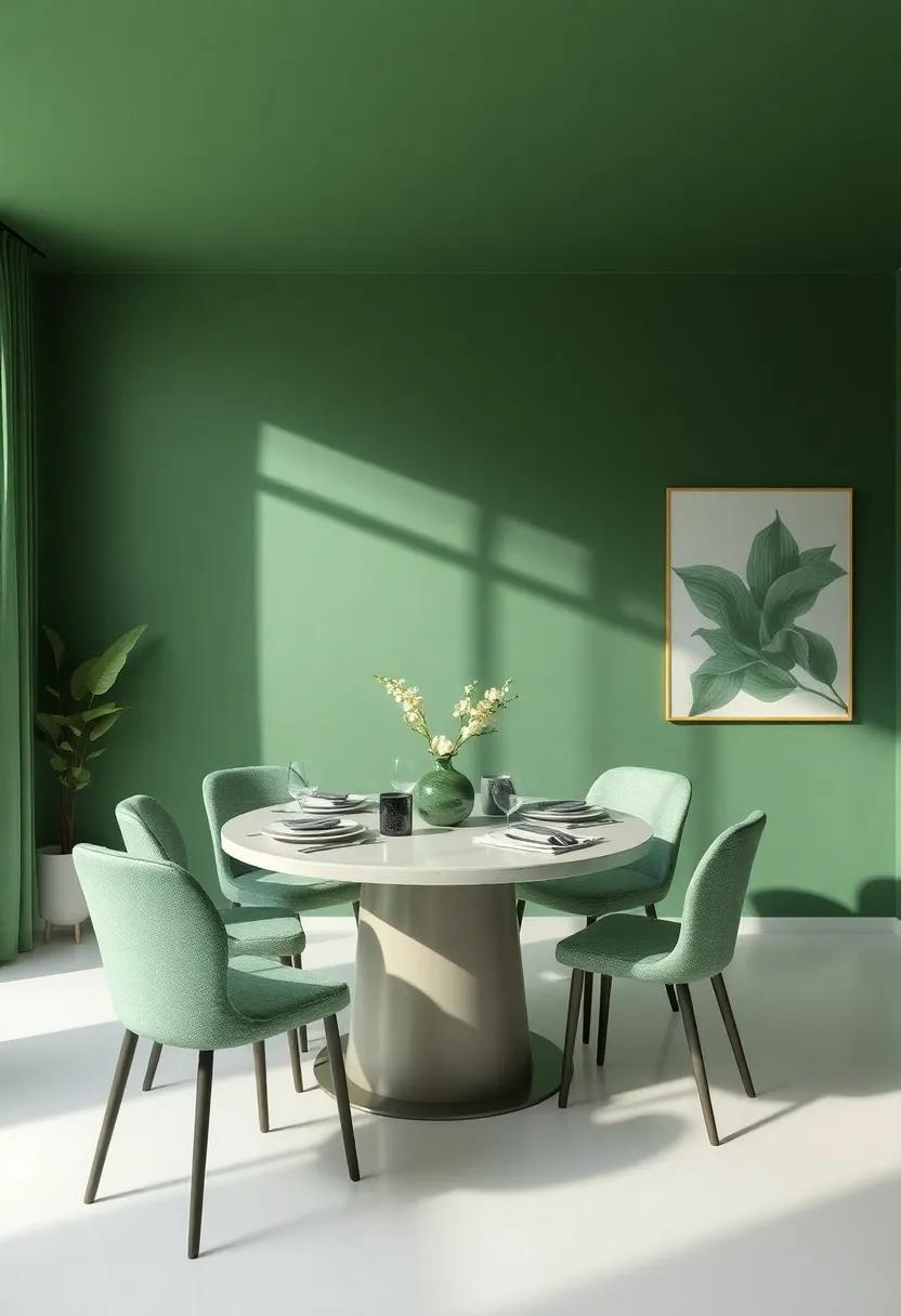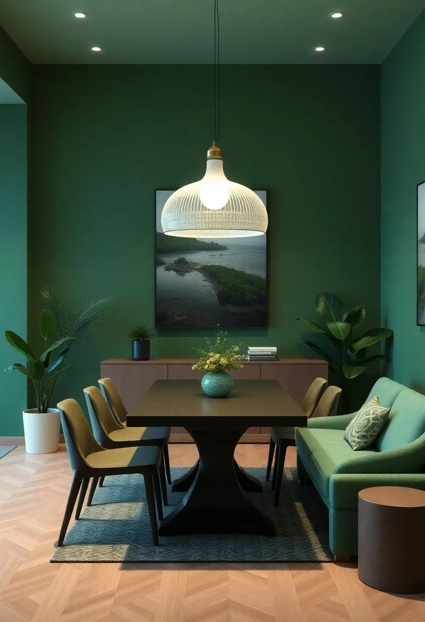 Layering Shades of Green for a Harmonious Dining Room Atmosphere