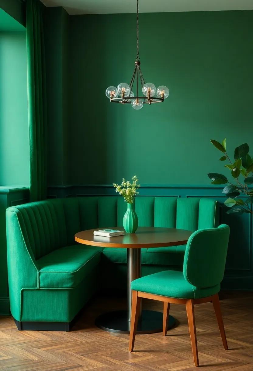 To elevate the seating area while maintaining a cohesive look, think about incorporating statement pieces that complement the green theme.For instance, a rustic wooden dining table can serve as a stunning contrast against the chic green upholstery. You might also introduce accessories like patterned placemats, elegant tableware, and nature-inspired centerpieces that echo the shades of green throughout the room. Below is a simple guide to help you mix and match coordinating elements: