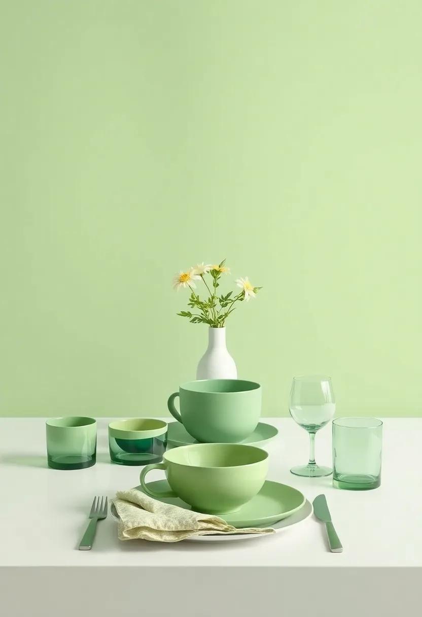 - Ceramic Tableware in Green Tints: Hand-painted options can bring a unique, artisanal touch to your table.
