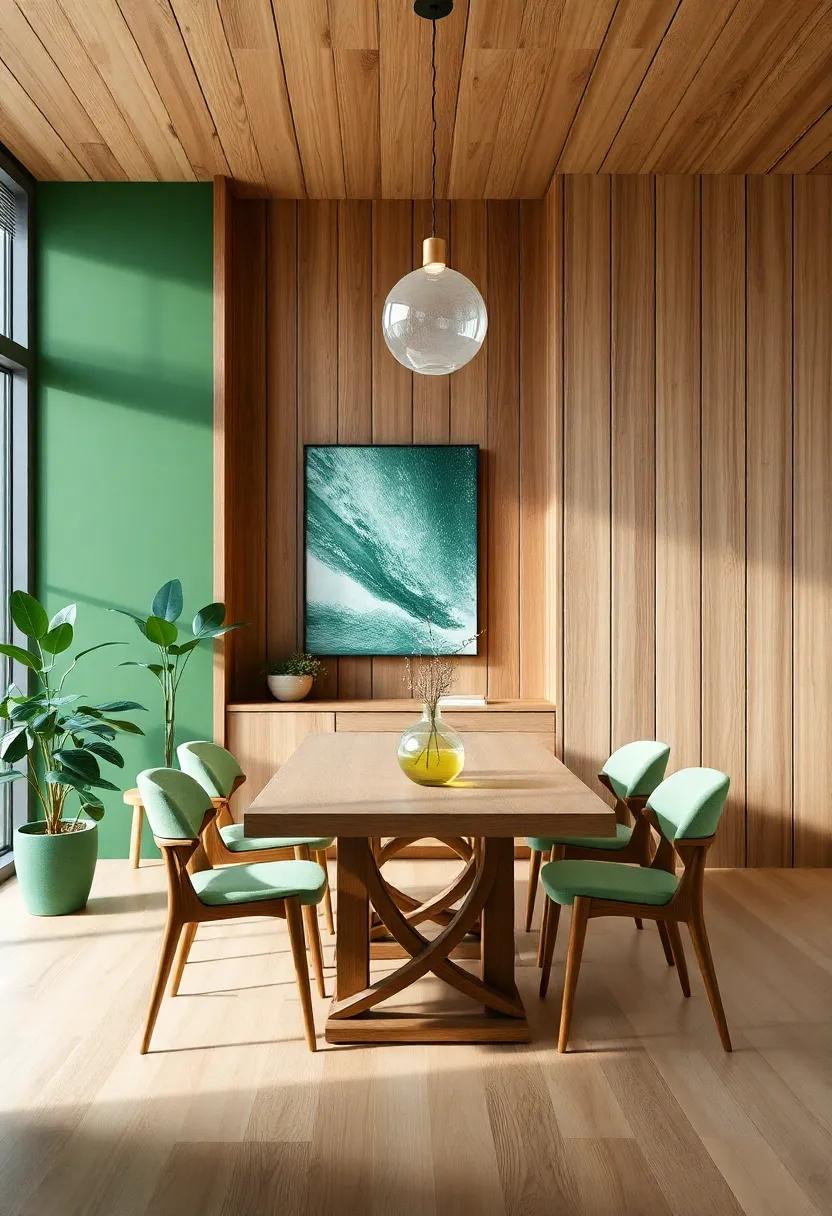 Incorporating natural wood accents into your dining room brings a warm, earthy touch that complements vibrant green elements beautifully. Consider wooden dining tables, open shelving, or even framed artwork made from reclaimed wood to create a harmonious balance between nature and style.the richness of wood tones can enhance the serenity of green hues, making your space feel both inviting and refreshing.For instance, pairing a light oak table with deep emerald or sage green seat cushions creates a stunning contrast, while also ensuring a cohesive look that’s easy to achieve with the right color palette.