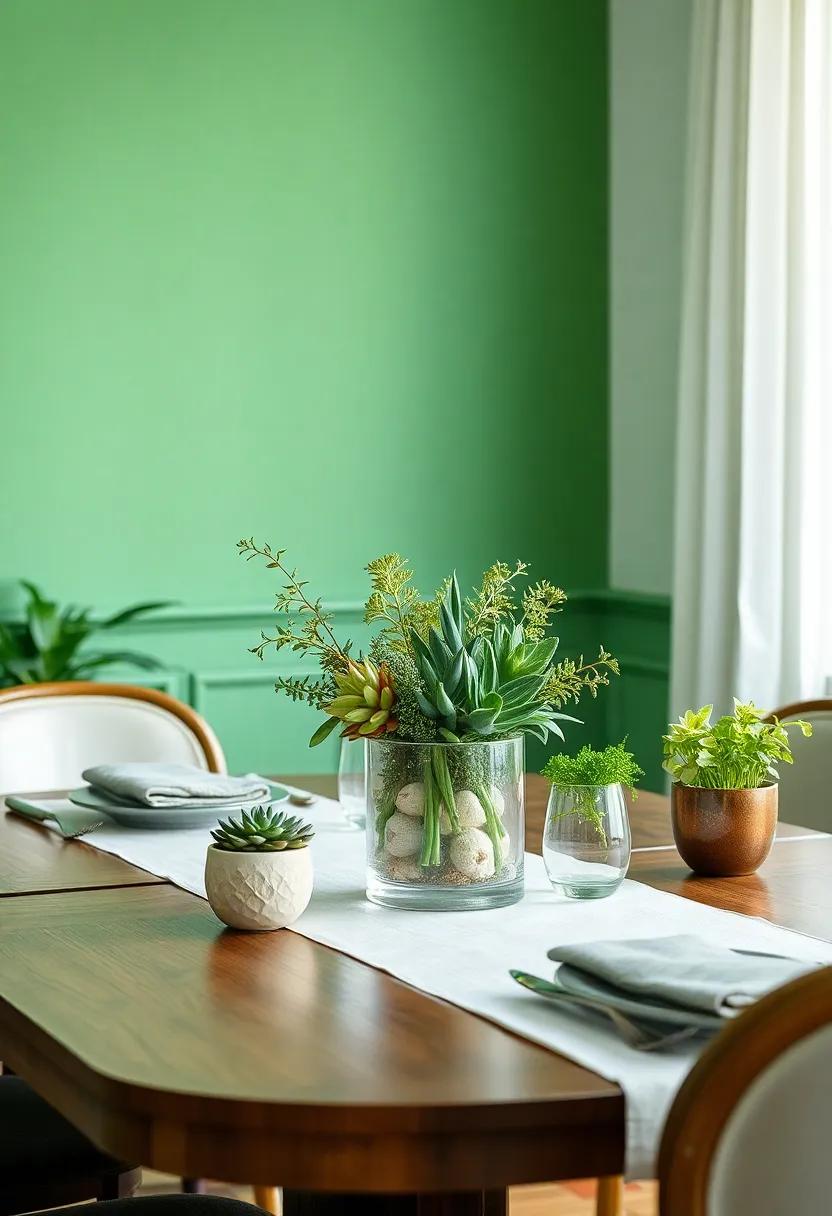 to create a cohesive look, balance your green accents with complementary decor elements. Natural wood accents—from tables and chairs to serving dishes—add warmth, while textiles in earthy tones can soften the space. Incorporating table runners or placemats in shades of green can tie the look together seamlessly. For those looking to make a bolder statement, a feature wall painted in a soft green hue or adorned with botanical wallpaper can serve as a stunning backdrop for your dining area, infusing it with life and vitality.