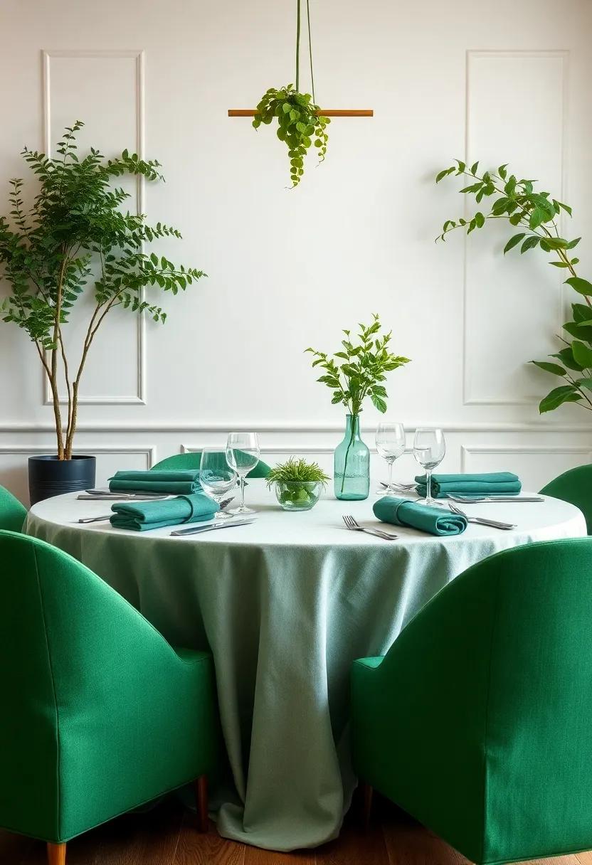 Combining these elements can highlight the rich textures and shades of your green decor while inviting a sense of comfort. Pairing a chic green tablecloth with warm, golden lighting can create an enchanting ambiance perfect for gatherings. Make sure to experiment with the placement and intensity of your light sources to find the ideal balance that feels both stylish and intimate.