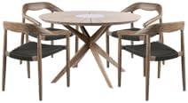 This outdoor dining ensemble is designed to elevate your patio experience with a perfect balance of style and functionality. The combination of light Eucalyptus wood with a gray super stone center gives the table a robust yet elegant appearance, while the lightweight frames of the dining chairs make rearranging effortless. The intricate charcoal rope weave provides comfort and breathability, ensuring a cozy atmosphere even on hot summer days. The set includes four chairs, which offer ample support for lounging, making it an ideal addition for both intimate dinners and lively gatherings.