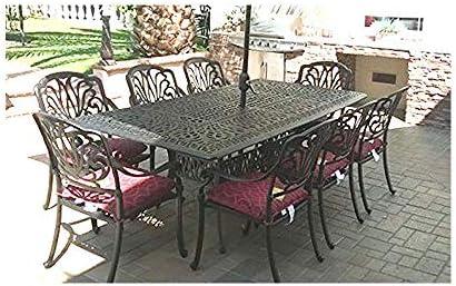 Cast Aluminum Outdoor Furniture Elisabeth 9pc Patio Dining Set with 44″x84″ Rectangle Table
