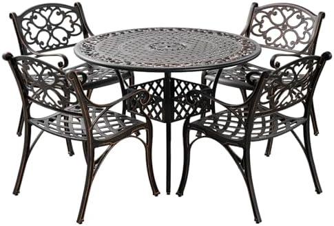 In terms of durability, the high-quality cast aluminum construction provides excellent weather and rust resistance, ensuring longevity even in harsh outdoor conditions. Easy assembly is another highlight, as the set comes with clear instructions and tools included. The set can be versatile for various occasions, from family gatherings to casual get-togethers. However, one downside is that the umbrella is not included, which may require an additional purchase to fully take advantage of the table’s design.