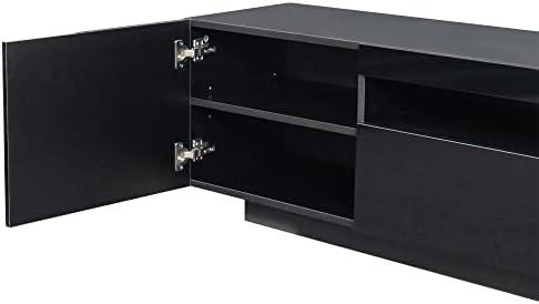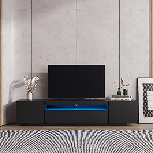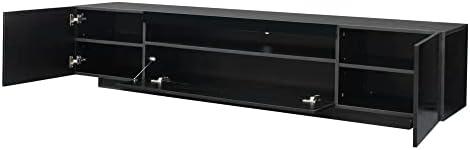 When it comes to versatility, this modern LED cabinet truly shines. Its sleek black finish and streamlined design make it an ideal addition to various areas of our homes, whether it be the living room, bedroom, office, or even a game room. We can easily envision it accommodating a wide range of television sizes, from a compact 32-inch to an expansive 80-inch screen. With dimensions of 78.74” x 14.96” x 16.93”, it provides ample space for displaying our favorite decor items while also offering two large storage drawers to tuck away essentials, ensuring that our spaces remain organized and visually appealing.