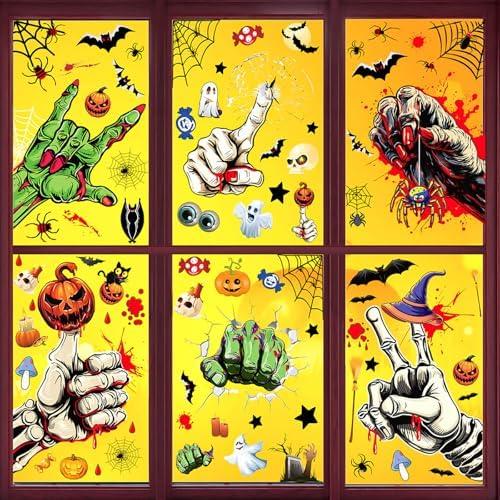 Elevate your Halloween spirit with these vibrant indoor decorations that feature an array of spooky designs, including bloody handprints and cheerful pumpkins. These decorative stickers are perfect for any smooth surface, allowing you to easily apply them to windows, mirrors, and even office spaces. The process of applying the clings is straightforward: just clean the surface, spray some water, and place them where you desire. They adhere securely while remaining easy to remove, leaving no sticky residue behind—ideal for temporary Halloween events or seasonal decor.