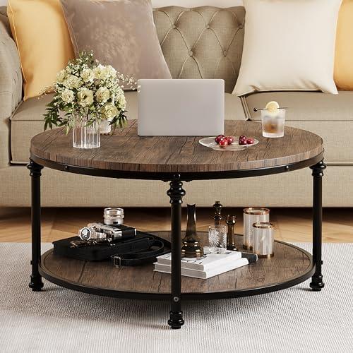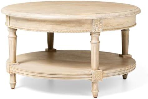 Elegant Round Center Table with Ample Storage and Vintage Style