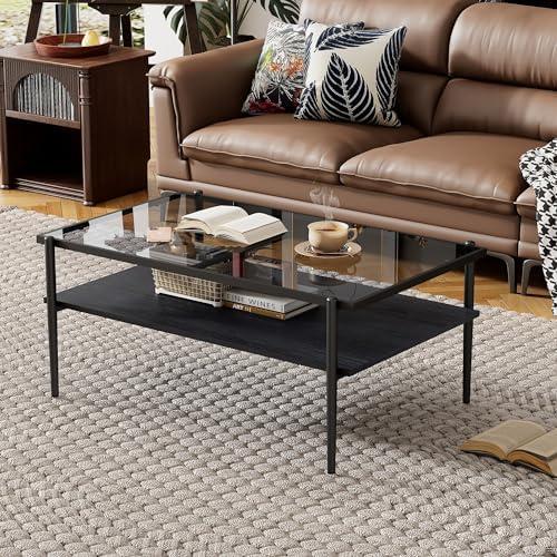 Meihua Tempered Glass Coffee Table Metal Legs Modern Coffee Table Living Room (Black)