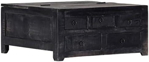 vidaXL Coffee Table Black 25.6″x25.6″x11.8″ Solid Mango Wood