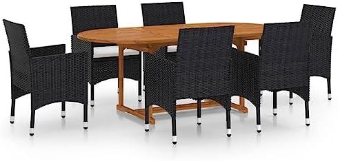 Transform your outdoor space into a chic dining area with this 7-piece garden dining set. Featuring a robust table crafted from solid acacia wood, this set ensures stability and strength for outdoor use, thanks to its oil-treated finish. The dining chairs are elegantly designed with a steel frame and woven weather-resistant PE rattan, making them not only durable but also easy to maintain. The inclusion of thickly padded cushions enhances comfort, allowing you to relax and enjoy outdoor meals or gatherings effortlessly.