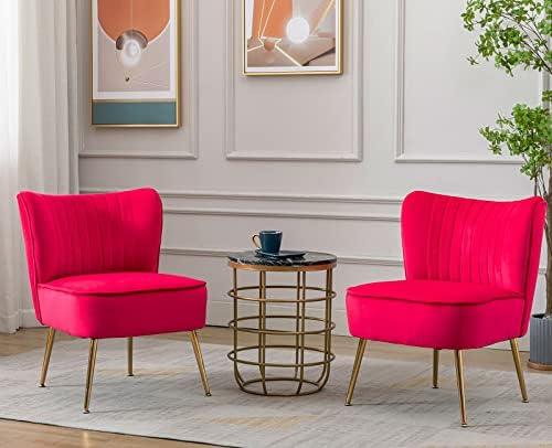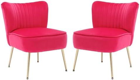 These accent chairs feature a classic and contemporary design, crafted with premium velvet fabric that is soft to the touch and visually striking. Their high-density foam filling ensures a comfortable seating experience, perfect for various activities such as reading or relaxing. With a sturdy frame supporting a weight capacity of up to 250 lbs, you can confidently enjoy your time in these chairs. The slender golden legs not only provide stability but also add a chic modern touch, making them suitable for any room, from the bedroom to the office.