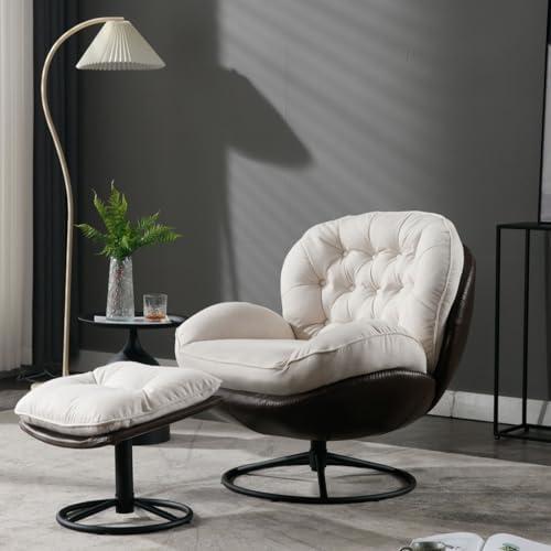 Luxurious Cream Swivel Chair with Ottoman for Versatile Comfort