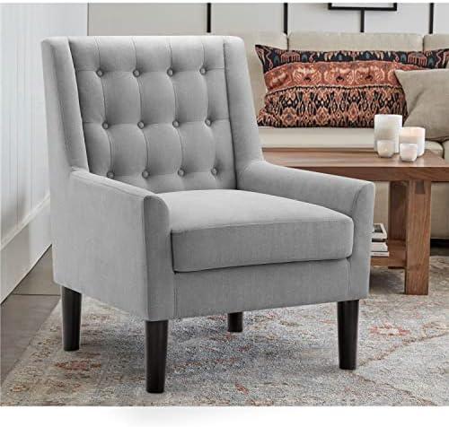 Mid-Century Modern Accent Chair with Button Tufting in Natural Gray