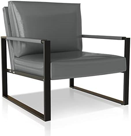 This armchair offers a combination of ergonomic design and mid-century modern style, perfect for enhancing various living spaces. The chair features an extra-large, high-density sponge cushion and a supportive backrest that aid in maintaining a healthy posture while providing luxurious comfort. With a sturdy metal frame capable of supporting up to 250 pounds, it ensures durability and stability for long-lasting use. The aesthetic appeal of the faux leather makes it an excellent addition to any room, easily matching different home decors whether in the living room, bedroom, office, or dining area.