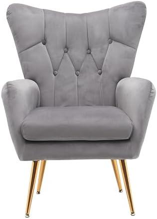 This accent chair offers a blend of luxury and functionality with its premium 100% polyester microfiber upholstery, which is not only soft to the touch but also designed to resist pilling, ensuring durability over time. The chair features an ergonomic wingback design with a 28.3″ long backrest that provides exceptional lumbar support, making it an ideal choice for relaxation. The sturdy construction combines metal and wood frames along with robust metal legs, enabling it to support up to 280 lbs, which ensures both stability and style. Its mid-century design is complemented by elegant button-tufting and sleek flared legs with a glamorous gold finish, adding a sophisticated touch to any room.