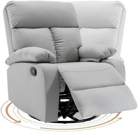This chair boasts a blend of comfort and style, making it an excellent choice for those with limited space. With dimensions of 38.9” H x 30.2” W x 32” D, it is perfectly sized for small living areas, bedrooms, and even RVs. The high-density sponge cushion and overstuffed armrests ensure a cozy sitting experience, while the anti-scratch leather offers durability and easy maintenance. Additionally, it features a 360° swivel and 30° rocking function, providing versatile usage options to suit your relaxation preferences.