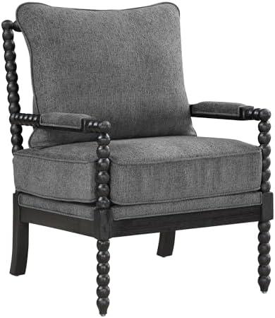 OSP Home Furnishings Eliza Spindle Accent Chair, Charcoal Grey Fabric with Black Wood