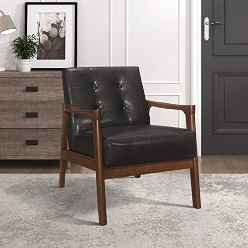 With its Mid-Century Modern influences and classic aesthetic, this accent chair is designed to enhance the retro vibe of your living space. The luxurious dark brown faux leather upholstery provides a plush seating experience, while the robust solid wood frame finished in dark walnut offers both durability and style. The button tufting on the seatback adds an elegant touch, making this chair not only functional but also a statement piece in any room. Assembly is required, but it arrives conveniently packaged in one box, simplifying the setup process.