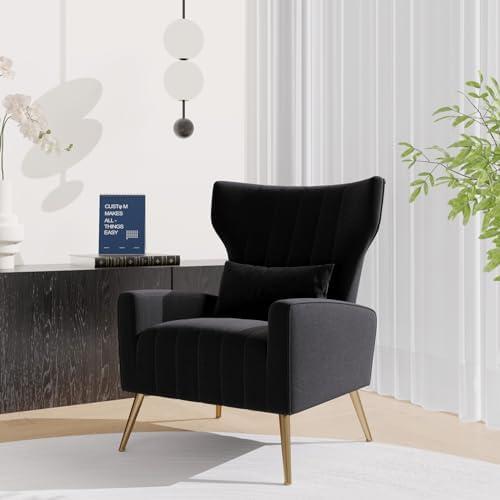 This elegant accent chair offers a blend of comfort and style, making it a perfect addition to your living space. Crafted with luxurious velvet upholstery, the chair features a spacious seat, a high backrest, and advanced spring support to enhance your seating experience. The durable metal legs provide enduring stability while the non-slip foot pads ensure safety on various floor types. Available in a striking black color, it seamlessly complements both contemporary and traditional décor, making it a versatile piece for your living room, bedroom, or office.