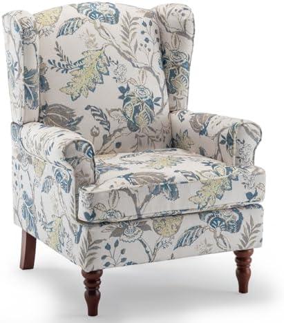 This accent chair combines style and comfort, showcasing a beautiful blue floral print that adds a retro romantic touch to any room. With its high back and cylindrical armrests, it offers ergonomic support designed for relaxation. The widened seat space and the cushioned thick sponge ensure that you can unwind comfortably, making it a perfect addition to the living room, bedroom, or home office. Furthermore, its solid wood legs provide stability, supporting individuals weighing up to 350 lbs while enhancing the chair’s aesthetic appeal.