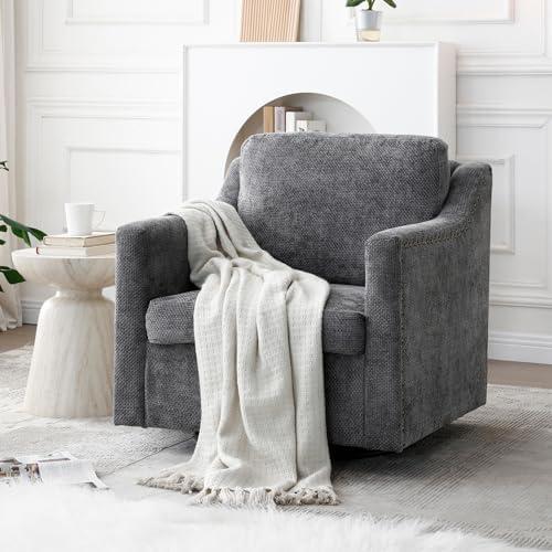 This chic accent chair features a contemporary barrel design that provides both comfort and style. Measuring 31.1″W x 32.3″D x 35.2″H, it’s perfect for larger spaces and is designed to easily support weights up to 300 pounds. The finely woven chenille fabric not only adds a touch of luxury but also gives it a plush feel that is inviting for extended lounging or reading sessions. With its 360° swivel functionality, you can enjoy flexibility in seating position, making it a great addition to any room, including living rooms, bedrooms, or even home offices.