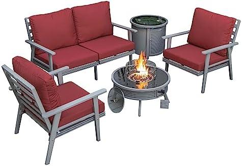 Modern Aluminum 5-Piece Outdoor Set with Fire Pit