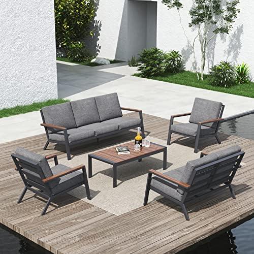 Stylish Aluminum Patio Furniture Set with Wood Armrests
