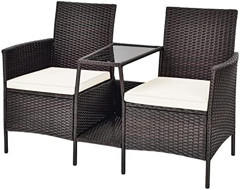 TWO-SEAT RATTAN LOVESEAT WITH COFFEE TABLE FOR OUTDOOR RELAXATION