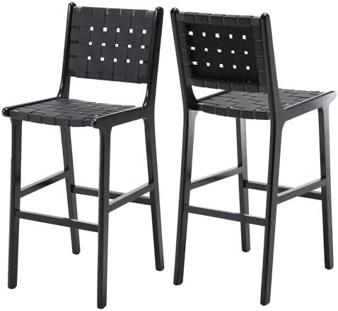 These modern bar stools feature high-quality faux leather for a soft yet durable seating experience. The breathable material ensures comfort without feeling stuffy, making it ideal for long sit-downs at your kitchen island or home bar. With exquisite craftsmanship visible in the hand-woven leather and well-placed nailhead accents, these chairs exude a sense of luxury. Their ergonomic design provides excellent lumbar support, allowing you to unwind comfortably. Additionally, the sturdy solid wood frame enhances stability and durability, accommodating weights up to 330 pounds.