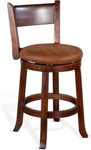 Crafted from mahogany solids and veneers, this barstool offers a blend of elegance and practicality with its dark chocolate finish. The simple design features a comfortable upholstered seat and a supportive wooden back, making it suitable for various décor styles. With a swivel function, you can easily turn around to engage with your surroundings, enhancing the social experience whether you’re at the kitchen island or a home bar. Measuring 24 inches in height with a seat width of 17 inches, it strikes an ideal balance between comfort and compactness, perfect for smaller spaces.