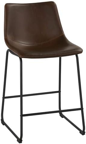 Revamp your space with these eye-catching stools that offer a blend of elegant design and practical features. The faux leather upholstery provides a luxurious look and plush comfort while being durable and easy to maintain, making it ideal for both busy households and commercial spaces. With a sleek, brown seat that exudes rustic elegance, these stools can seamlessly integrate into various interior decor themes, whether in your kitchen, dining room, or bar area. Their sturdy metal frame and legs ensure long-lasting stability alongside stylish aesthetics.