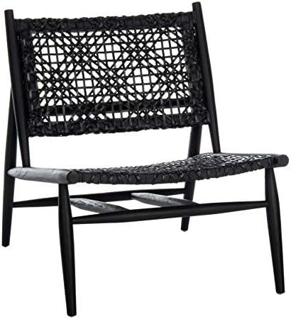 Safavieh​ Home Bandelier ⁣Black and Black Leather Weave Accent Chair