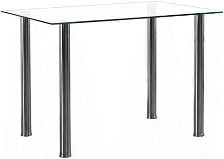 Crafted with an 8mm tempered glass tabletop and a rust-resistant stainless steel frame, this exquisite piece combines elegance with functionality. The sleek transparent surface not only enhances the aesthetic of your dining area but also ensures durability, making it a suitable choice for both casual and formal settings. With dimensions of (43.3 x 27.6 x 28.9) inches, it provides ample space for family meals or entertaining guests without compromising on style. Additionally, this versatile table easily blends into various décor styles, making it a great addition to your kitchen, dining room, or living area.