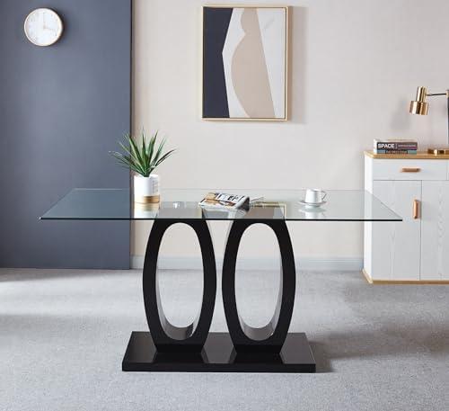 Stylish Rectangular Dining Table for 4-6 with Glass Top and Elegant Legs
