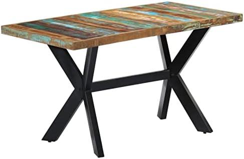 This dining table marries vintage elegance with a modern industrial flair, prominently featuring a solid reclaimed wood tabletop crafted from various sources, ensuring each piece tells its own unique story. The wood, sourced from old buildings, possesses characteristics that only time can impart, retaining diverse hues and grains that add charm to any kitchen or dining room. With dimensions measuring 55.1″ x 27.6″ x 29.5″, it comfortably accommodates family meals and gatherings. Moreover, handcrafted with meticulous attention to detail through polishing, painting, and lacquering, each table is a testament to skilled craftsmanship.
