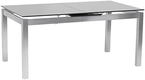 This modern dining table is a stunning centerpiece for any dining room, featuring a sleek gray tempered glass top paired with a stylish brushed stainless steel base. Its extendable design allows you to easily adjust the size by simply pulling at one end, making it perfect for accommodating extra guests without the need for separate storage for the extension. The elegant gray tint of the glass adds a sophisticated touch, enhancing the overall aesthetic of your space.