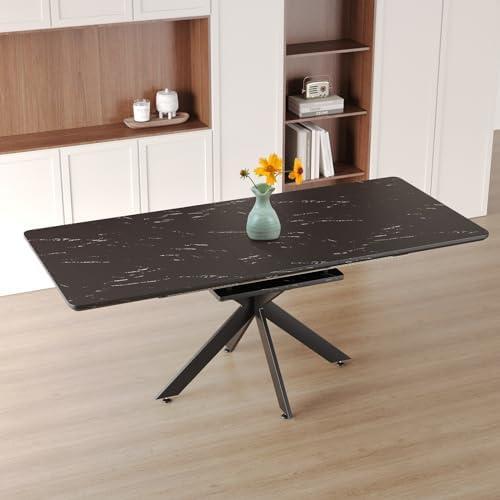 This exquisite dining table features a modern design with a black finish, making it a perfect addition to dining rooms or restaurants. Its compact size of 62.4” can expand seamlessly to 78.15”, allowing you to comfortably accommodate 6 to 8 guests. The sturdy X-shaped metal legs ensure stability and can handle heavy use, while the high-quality MDF desktop provides durability and is exceptionally easy to clean—simply wipe away any stains. With an installation time of just 10-15 minutes, this table combines functionality and aesthetic appeal effortlessly.