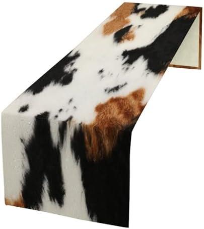 Cowhide Table Runner with Vintage Cow Print for Rustic Decor