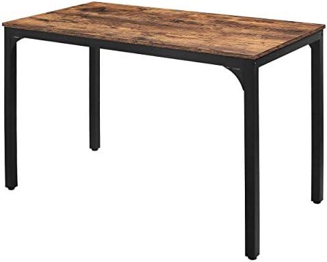 This dining table features a striking industrial design, combining a rustic wooden top with sleek black metal square legs. Its aesthetic not only enhances the charm of your dining space but also provides a versatile option suitable for various settings, from family meals to game nights. Measuring 55.1”W x 23.6”D x 29.5”H, it is spacious enough for four people while maintaining an elegant profile that fits seamlessly into both dining rooms and kitchens. The high-quality engineered wood ensures durability, complemented by a scratch-resistant metal frame, making this table a long-lasting addition to your home.