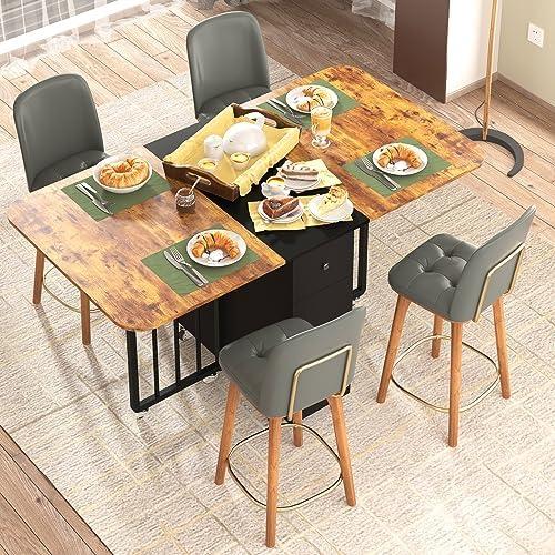 This innovative dining table offers a flexible solution that caters to various needs, making it an essential addition to any kitchen or dining space. It features identical storage drawers and cabinets on both sides, enabling seamless organization of dishes and utensils. The collapsible design allows it to be adjusted easily, accommodating up to four people when fully expanded, or folding down to fit just two. The table’s sturdy construction combines high-quality engineered wood and metal, ensuring durability while maintaining an elegant look.