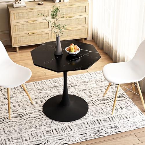 This contemporary octagonal dining table combines a stunning printed black marble tabletop with a sturdy metal base, making it an ideal addition to modern dining rooms, kitchens, or living spaces. With dimensions of 31.50 inches in length, 29.13 inches in width, and a height of 28.74 inches, it fits into compact areas while maximizing style. The exquisite design not only enhances the aesthetic appeal of your home but also complements various decor themes, from farmhouse to modern chic. Its easy-to-clean surface means you can maintain a tidy dining area with minimal effort, allowing you to enjoy every meal without fuss.
