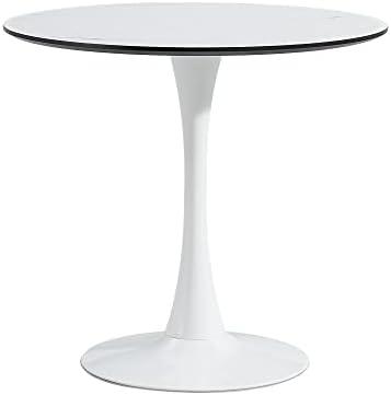 This beautifully designed round table boasts a solid white pedestal base, making it a striking addition to any dining area, kitchen, or lounge. With a 31.5-inch diameter surface that comfortably seats four, it optimally fits into smaller spaces, such as apartments or cozy dining nooks. One of the standout features is its easy-to-clean MDF tabletop, providing a hassle-free dining experience and safety for families with children. The mid-century aesthetic not only enhances the visual appeal but also seamlessly blends with various decor styles, adding a touch of elegance to any setting.