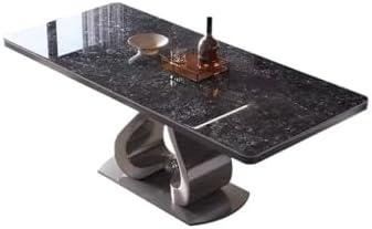 This dining table showcases an elegant design combined with functionality, making it a fantastic addition to any living space. With dimensions of 180cm in length, it offers ample space for family meals or entertaining guests. The slate facing material not only enhances its aesthetic appeal but also ensures durability. Designed with thickened 304 stainless steel legs that can support up to 500KG, the table promises stability and longevity while adding a touch of high-end artistry to your home decor. Its clean lines and espresso finish create a warm ambiance, making it perfect for family dinners or as a stylish conference table.