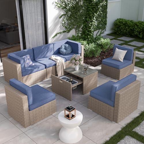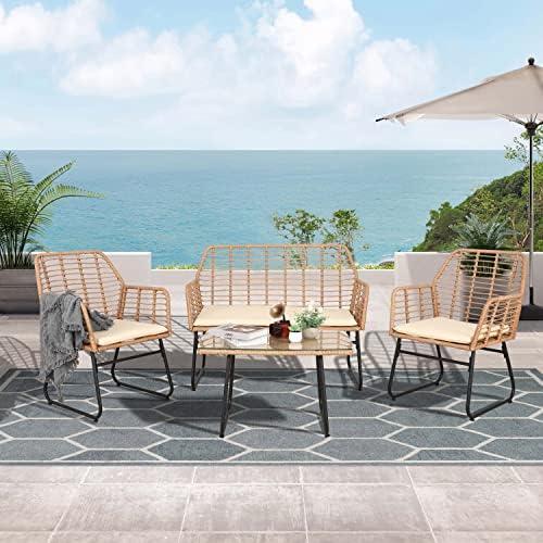 However, there are some considerations to keep in mind. While the easy assembly feature is user-friendly, with instructions provided, the fact that items may arrive in separate shipments can be inconvenient. Additionally, the synthetic wicker, although resistant to various weather conditions, might not have the same charm as natural materials for some users. On the plus side, this set is UV-resistant and waterproof and offers ample storage space within the coffee table for essentials like books and snacks. Despite minor drawbacks, this outdoor furniture set strikes a great balance between form and function, making it a worthwhile addition to any backyard or patio space.