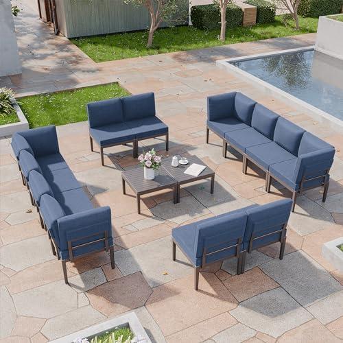 This outdoor furniture set offers a modern design with a strong, all-iron frame that is rust-proof, ensuring durability while maintaining a lightweight feel. The versatility of the sectional design allows you to customize your seating arrangement to fit your patio, backyard, or deck perfectly. With comfortable 4-inch thick cushions, you can relax in style, turning any outdoor space into an inviting area for conversation or relaxation. The waterproof fabric on the cushion covers adds an additional layer of practicality, making them easy to clean and maintain.