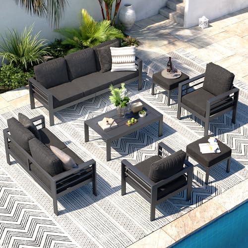 Maintaining this furniture set is straightforward, as all cushion covers are removable and machine washable, allowing for easy cleaning. The rustproof aluminum frame ensures long-term durability, while the elegant design makes it a stylish addition to any porch, balcony, lawn, or yard. Customers can benefit from comprehensive support, with a one-year guarantee and round-the-clock customer service for added assurance. However, potential buyers should consider the size of the set to ensure it fits their outdoor space, as it may be bulky for smaller areas.